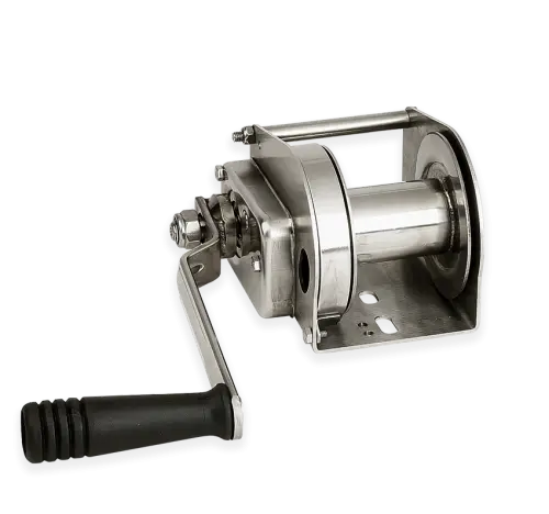 En este caso tenemos un cabrestante manual y un cable, ambos de acero inoxidable. Este es el sistema más pro, porque hace que el montaje de la vela sea rápido y, a su vez, la durabilidad es total al ser íntegramente de acero inoxidable (como el tensor de vaina). Hay varios modelos, pero el look suele ser industrial o náutico.