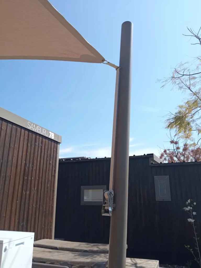 Hemos tratado con muchos clientes que se han decidido por velas de sombra con polipastos o cinchas para tener la opción de quitarlos fácilmente, pero la realidad es que el 90 % de ellos dejan la vela instalada permanentemente y creemos que no tiene sentido el sobrecoste de estos mecanismos si no se va a aprovechar su funcionalidad. Por ello, nosotros siempre recomendamos utilizar tensores de vaina, que se pueden combinar con mosquetones o grilletes, a menos que estés seguro de que la opción de quita y pon es muy importante para ti. ¡Recuerda que el tensor de vaina también se puede quitar!